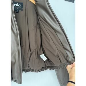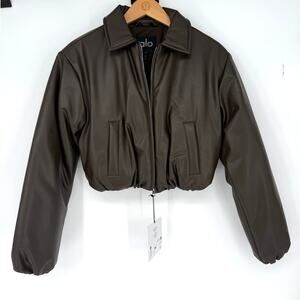 Alo Jacket Faux Leather Cropped Premier Bomber in Espresso Brown Size xs nwt