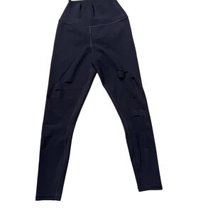 Alo Leggings Womens Small Black High Waist Ripped Moto Yoga Pants Activewear Gym