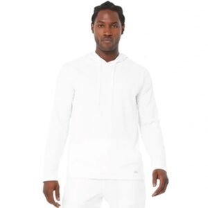 Alo Mens Conquer Hoodie Cover Up White Long Sleeve Size Medium