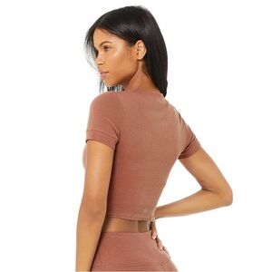 Alo Micro Waffle Sierra Crop Top Size S Short Sleeve Crew Neck CHESTNUT