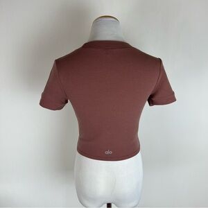 Alo Micro Waffle Sierra Crop Top Size S Short Sleeve Crew Neck CHESTNUT. Small spot on shoulder as seen in photo