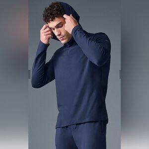 Alo Navy Blue Triumph Fleece Hoodie with Hidden Pockets - Size L