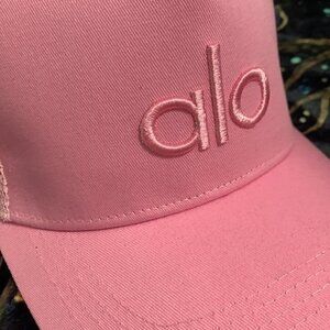 Stylish pink baseball cap by Alo. Perfect for casual wear.