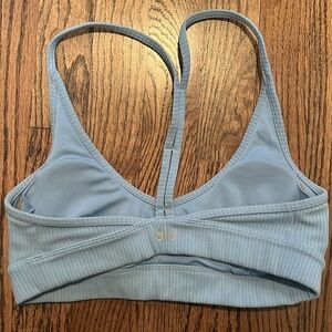 Alo Ribbed Blissful Bra in “Blue Skies”