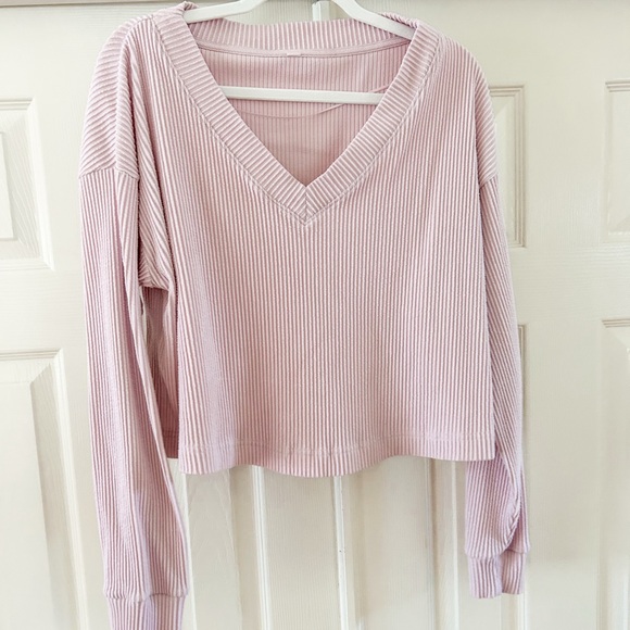 Alo Ribbed Pink Crop Sweater