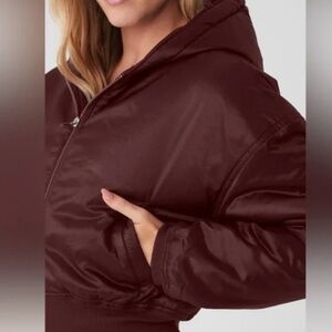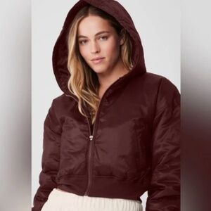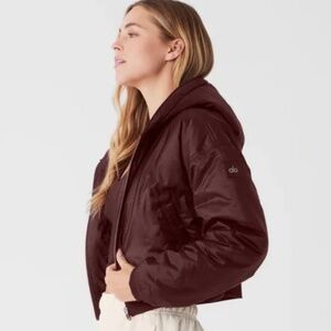 Alo Ripstop Cropped Cosmo Zip Up Hoodie in Cherry Cola SIZE XS