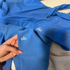 Stylish blue sports bra and leggings set. Perfect for workouts.