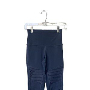 Alo Size XS Leggings Moto Mesh High Waist Navy Blue Long Yoga Barre Workout