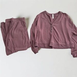 Alo Alolux Soho Cropped Henley & Soho Sweatpants Joggers Woodrose size XS