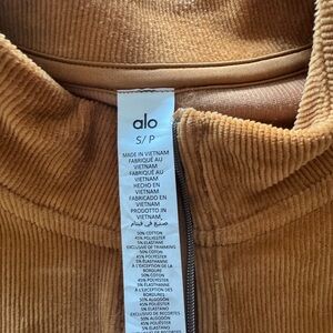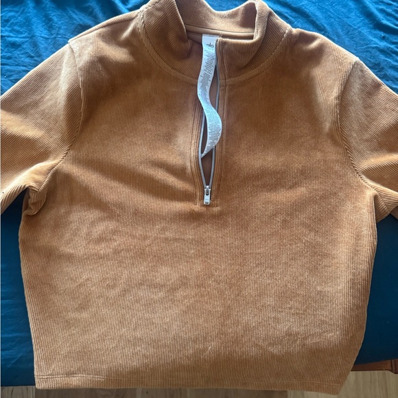 Cozy camel corduroy pullover with half-zip design. Ideal for layering.