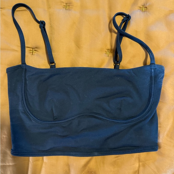 Comfortable black top with adjustable straps. Smooth stretch fabric provides light support and a seamless look. Versatile piece. Small.