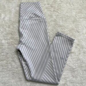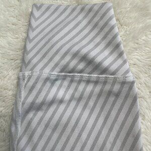 Alo Women's White Grey Cropped Mid Rise Striped Leggings Size XS