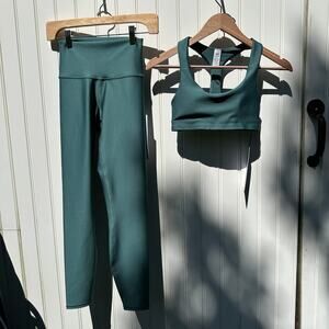 Alo Yoga 7/8 Airlift Leggings Advantage Racerback Bra Set Winter Ivy Green XS BN