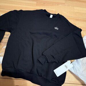 Alo Yoga Accolade Crew Neck Pullover and Sweatpant Set Balack Size S
