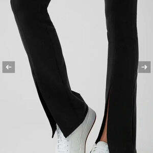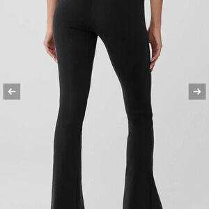 Airbrush flared leggings from ALO YOGA featuring black, stretch-design, flared, high waist, elasticated waistband and front slit.