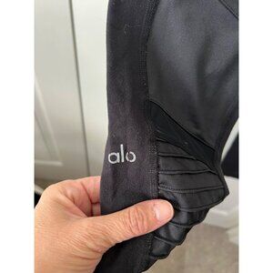 Alo Yoga Black High-Waisted Moto Leggings With Ribbed Detail For Women