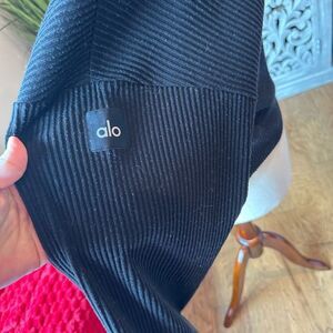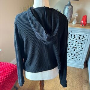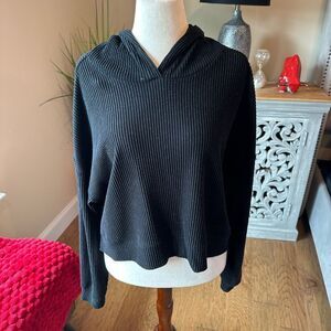 Alo Yoga Black Ribbed Knit Crop Hoodie Size Large