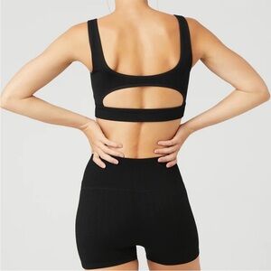 Alo Yoga Black Seamless Cable Knit Bra | Size Small EUC