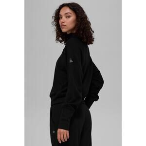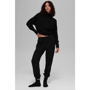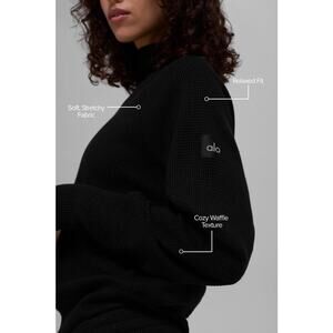Alo Yoga Black Waffle Weekend Escape Mock Neck Long Sleeve Thermal Top NEW