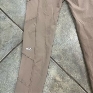 Alo Yoga Block Mesh Stripe Side Detail High Waist Leggings Beige Sz XS Outdoor