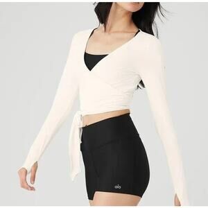 Alo Yoga Cropped Escalate Wrap Top - Ivory Small