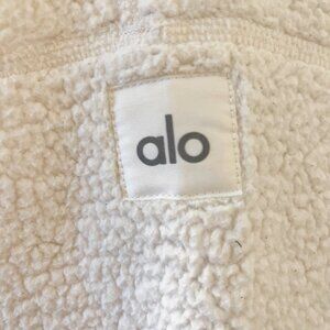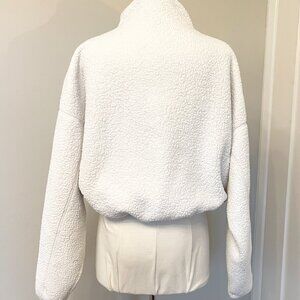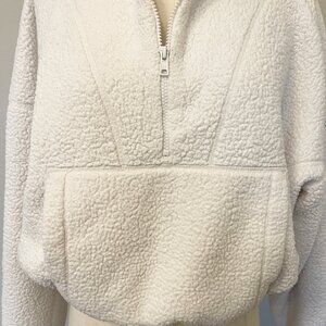 This cream colored Alo Yoga Double fleece lined half-zip cropped sherpa fleece will keep you incredibly warm.