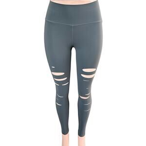 Alo Yoga Grey Ripped Warrior Legging High Rise High Waisted Full Length Size XXS
