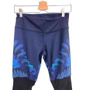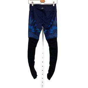 Alo Yoga Gypset Goddess Leggings Rich Navy Feather Print Ribbed Black Detail