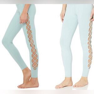 Alo Yoga High Rise Interlace Legging in Cloud light blue. Small