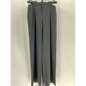 Alo Yoga Mid-Rise Black Showdown Trouser Size XS: mid-rise, straight leg, zip fly & adjustable side belt buckles, faux back welt pockets, lightweight woven fabric, loose, relaxed fit, measurements: 14.5 inch width x 32.5 inch length.