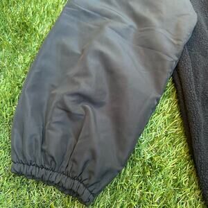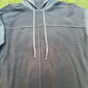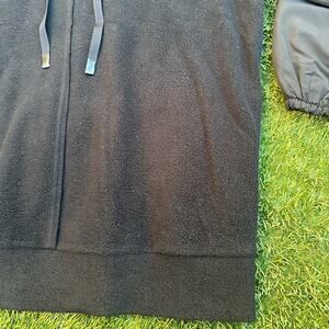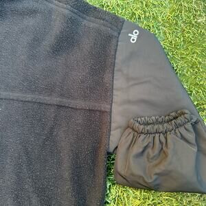Pre-Owned pullover sweatshirt by Alo Yoga Style is the Mixed Media Hoodie Color is All Black Size XS, super oversized fit Measurements: Pit to Pit 25 inches Length 29.5 inches Arm Length Inseam 16 inches Very good pre-worn condition. Super Clean, with minimal signs of wash and wear. The Sherpa fabric some lint and light rub wear in select spots. No color fade or discoloration of the fabric. No stains. No holes or tears. All of the seams are in excellent condition, no loose strings or fraying. The drawstrings on the hoodie are in very good condition, intact and functional with a small misshaped mark on the right string. Super oversized fit that cans easily work for many body types from size Small, Medium, or Large. Sleek and Neutral color, great for lazy days and lounging. Alo Logo on the left arm. I’d say this could easily be a Unisex Gender Neutral capsule piece. Soft and Comfortable.