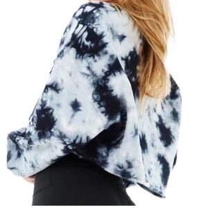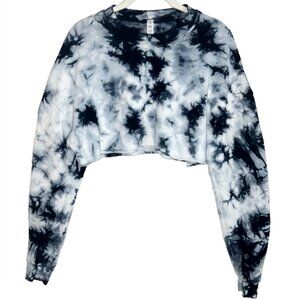 Alo Yoga Monochrome Tie Dye Cropped Sweatshirt XS Deep Navy White Lounge Top