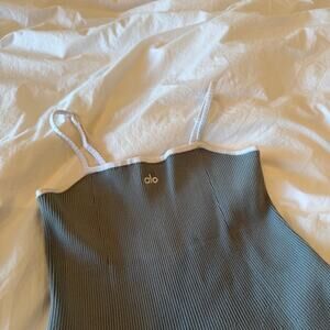 Alo Yoga Ribbed Sweater Knit Highline Dress Lunar Grey/White Size S