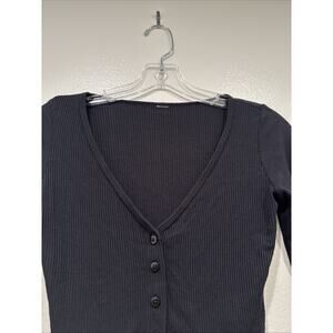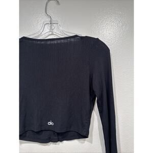 Alo Yoga Ribbed Whisper Cardigan Black Cropped Long Sleeve Button Front