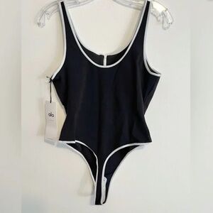 Alo Yoga Supernova Stellar Bodysuit. Thong Style. Black/White Trim. Size L. NEW