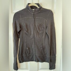 Alo Yoga Sz S Funnel Neck Zip Jacket Gray Bamboo Spandex Lightweight Jersey
