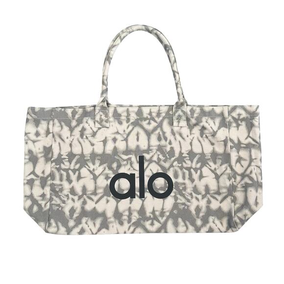 Carry-it-all in style with the Tie Dye Shopper. This perfectly oversized, heavy-duty canvas bag features corded handles, an Alo Yoga logo, and a gorgeous grey tie-dye pattern.