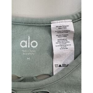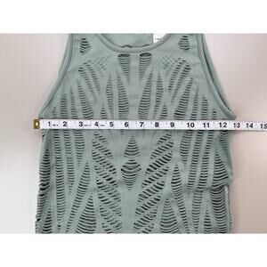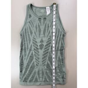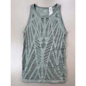 Alo Yoga Vixen Tank Top Womens Med Green Laser Cutout Stretchy Workout Gym Run