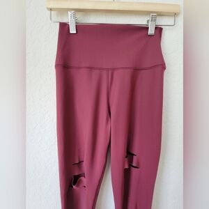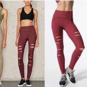 Alo Yoga Warrior Ripped Distressed Red ActiveWorkout Leggings Small