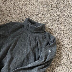 Alo Yoga XS Womens Charcoal Gray Mock Neck Pullover Sweatshirt