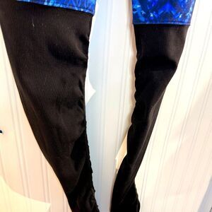 Stylish and comfortable, these women's leggings feature a vibrant blue pattern with black accents. Perfect for any casual outing or workout session.