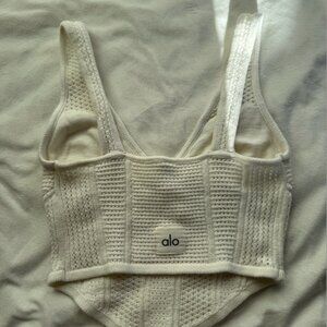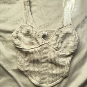 Fairly used, still in excellent condition, corset tank. There are two minimal stains near the right shoulder and left bustier area (see photos for details).