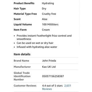 Aloe-Infused Frizz Control Cream 100ml - Effortless Smoothness for Fine Hair.