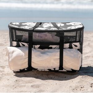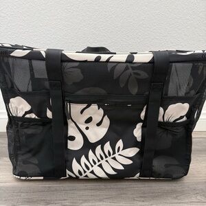 Spacious black and white floral tote designed for everyday use. Lightweight and easy to carry with sturdy handles. Modern monochrome print adds a stylish touch. Perfect for beach days or casual outings. Features durable construction and convenient interior space. NWT. From smoke/pet free home.