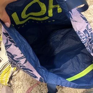purple and navy aloha collection tote.