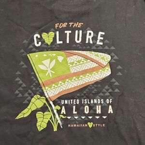This is a Hawaiian Style that says, "FOR THE CULTURE, UNITED ISLANDS OF ALOHA."