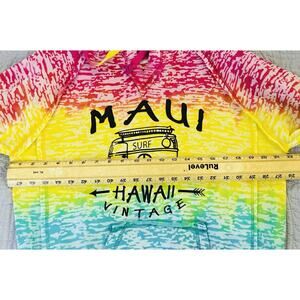 Aloha Hawaii Sz L Color Block Ombre Bold Colorful Hawaiian Vtg Maui LS Hoodie. Measurements in photos