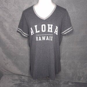 Aloha Hawaii Womens Grey V-Neck Graphic Tee Shirt XL Jerzees Short Sleeve
