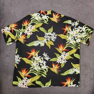 Aloha Hut Hawaii Shirt Mens 2X Black Hawaiian Floral Bird of Paradise Rayon