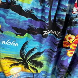Aloha Hut Hawaii Smocked Maxi Dress Tropical Print Summer Beach OS One Size